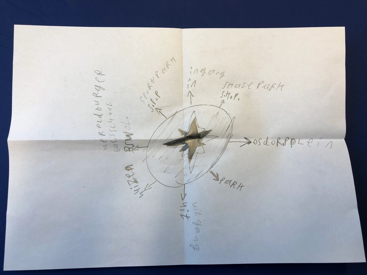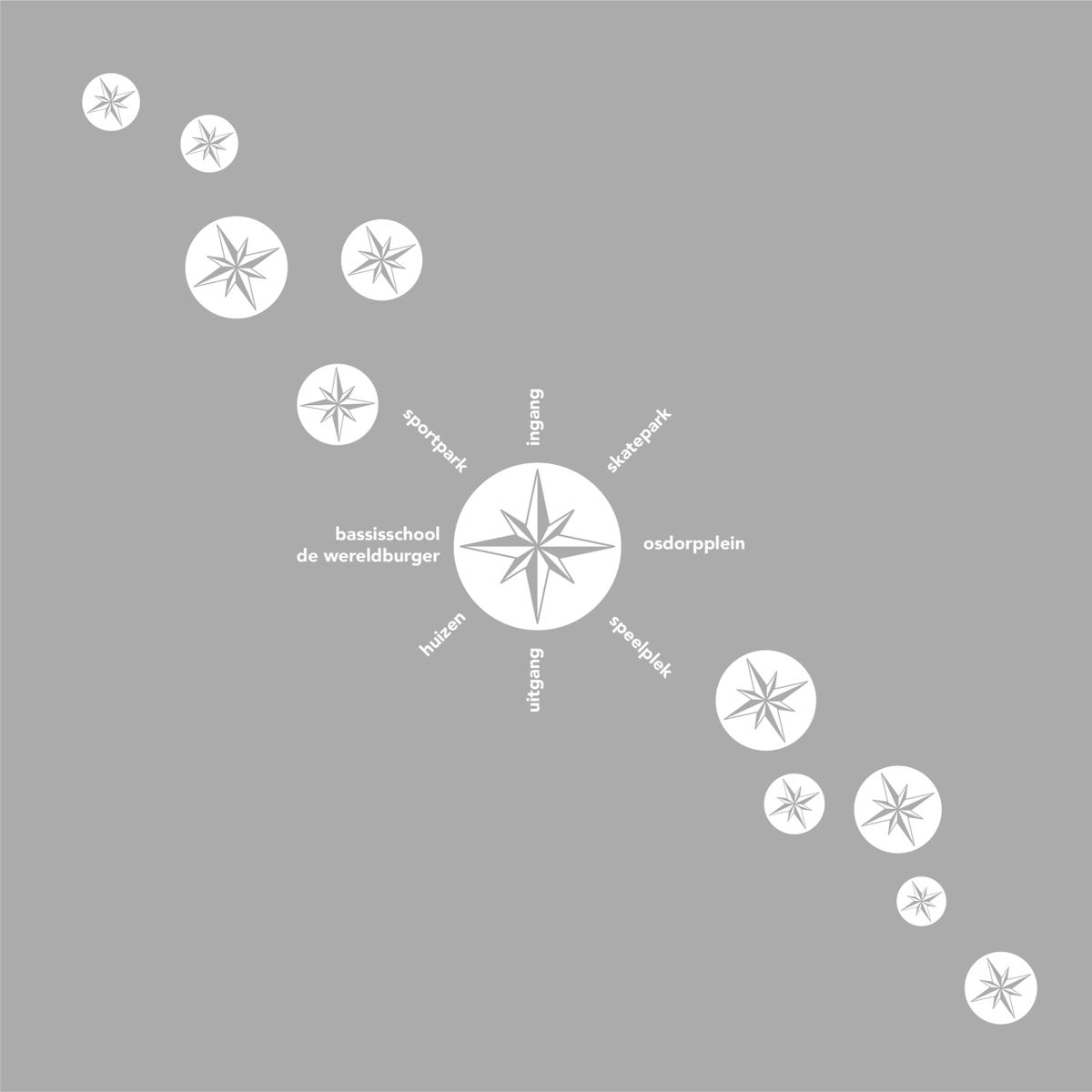 In Stadspark Osdorp gaan we een wandelroute maken. Een mooi patroon van windrozen op het asfalt gaat de route opsieren. De windrozen zijn een idee van een leerling van school De Wereldburger.